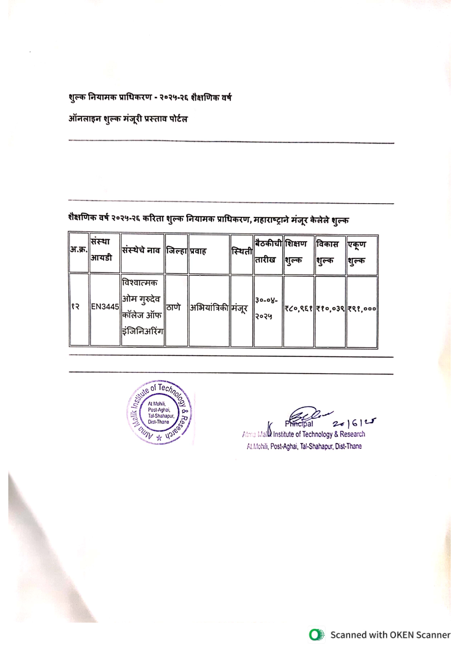 Online Fee Approval Proposal Portal of FEES REGULATING AUTHORITY-2025-26 (in Marathi)