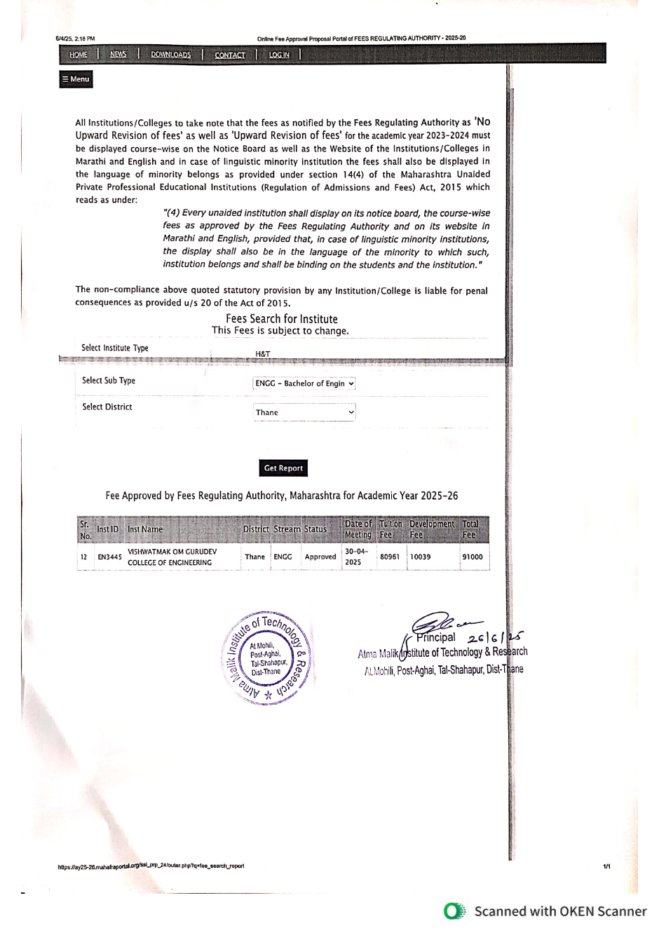 Online Fee Approval Proposal Portal of FEES REGULATING AUTHORITY-2025-26