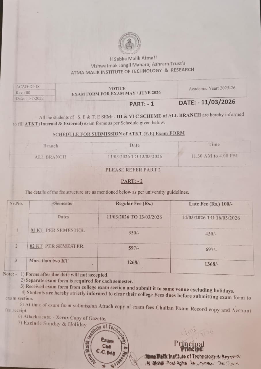 To apply for ATKT (Internal and External) exam forms for Sem 3 and 6 C Scheme of all branch